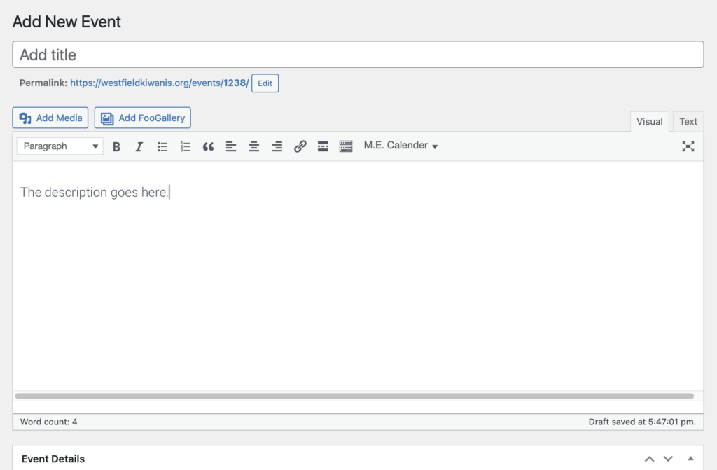Add a description and other important details for the event in the large text area below the title