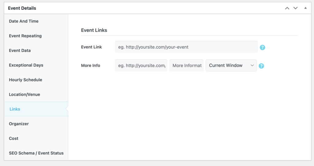 Click “Links” and add any information links, if any