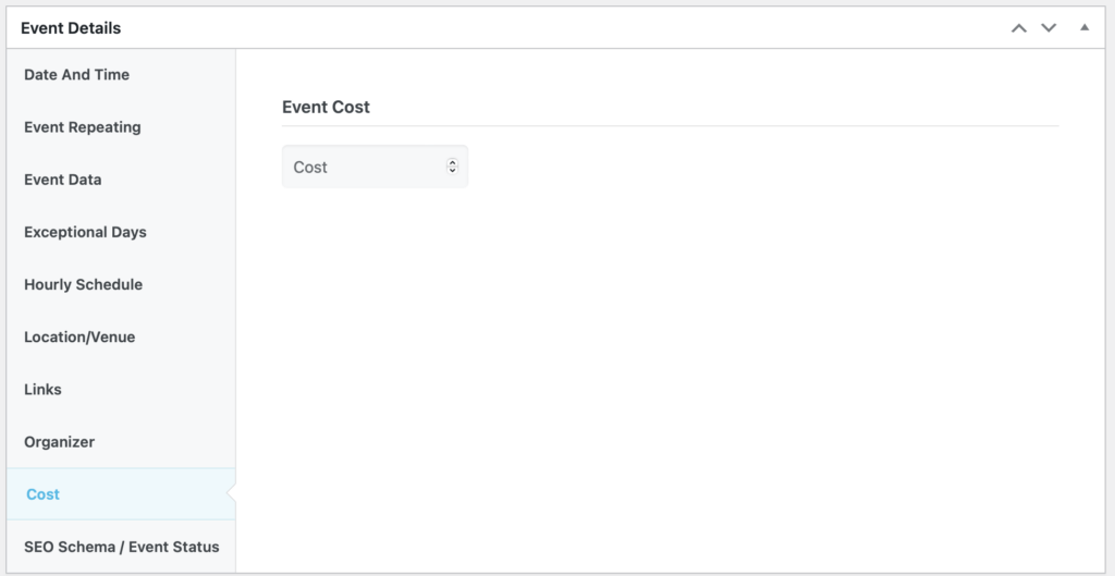 Click “Cost” and add the cost of the event, if any