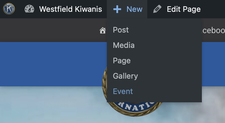 In the horizontal admin menu, hover over + New and click Event