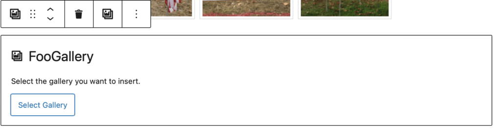 Select the “FooGallery” block type. Do not select the generic “Gallery” block type.
