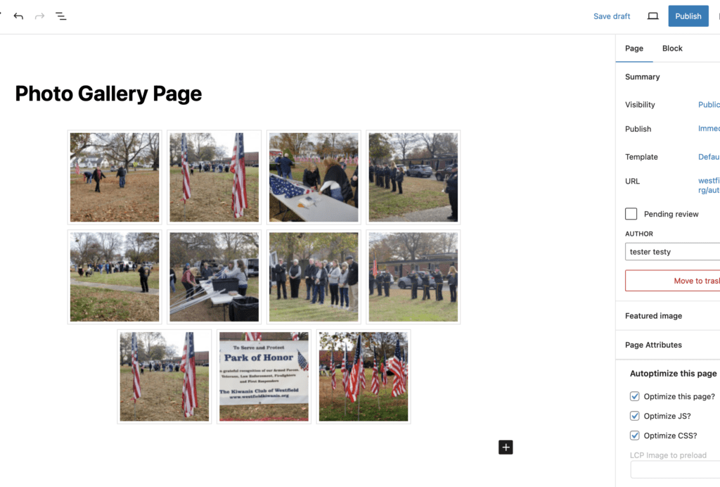 The photos will now appear in the page editor. Repeat the steps above to add additional galleries to the same page. Remember to his the blue “Publish” or “Update” button when done in the upper right.