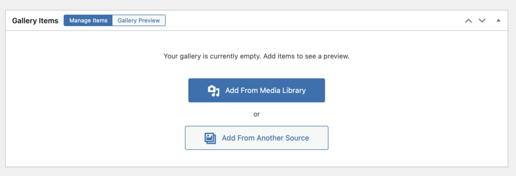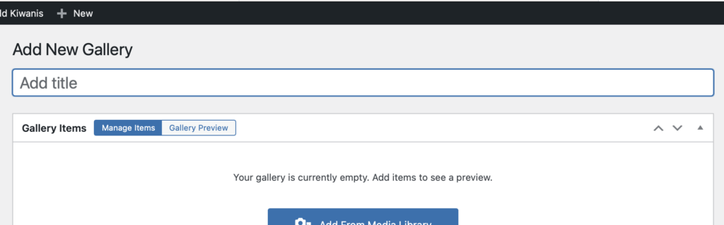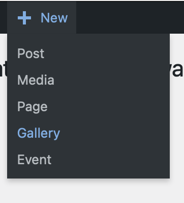 In the horizontal admin menu, hover over + New and click “Gallery”