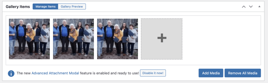 You will now be taken back to the “Add New Gallery” page. If you want to add more photos, click “Add Media.”