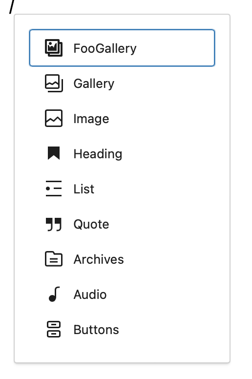 Well, the “/” is a shortcut key. When you type the “/” key, a dialog will pop up for choosing a block: